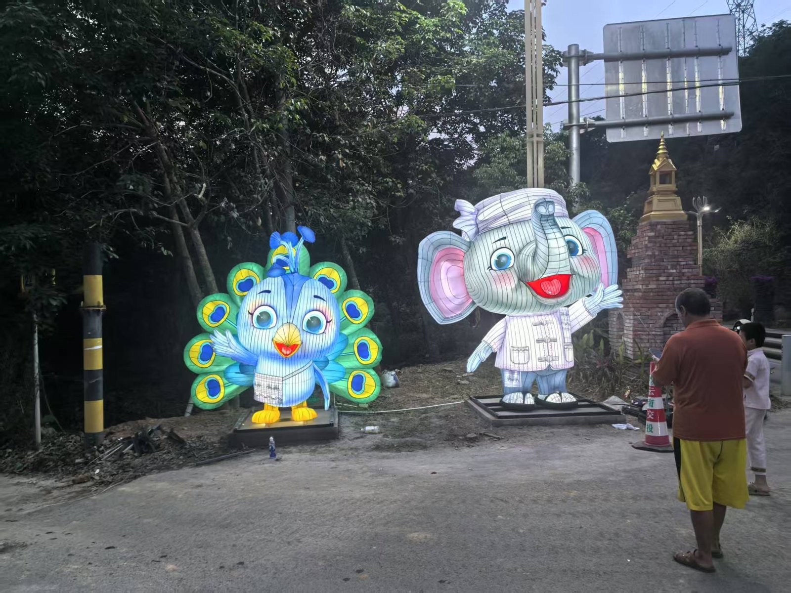 Our Dai Ethnic Lantern Design features a pair of cute cartoon-style animals – an elephant and a peacock, both wearing Dai ethnic traditional clothing. The colors are bright, the shapes are lively, and the characters are full of joy. This lantern set is often used in theme parks, night festivals, cultural events, and city lighting projects.