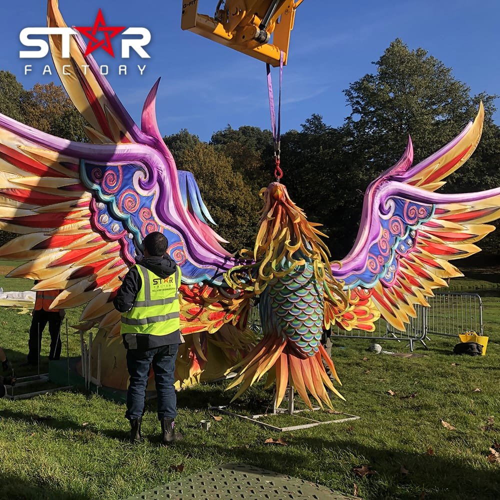Skilled artisans carefully design and assemble each Giant Phoenix Lantern. The details, from the feathers to the glowing wings, are made with precision and care.
