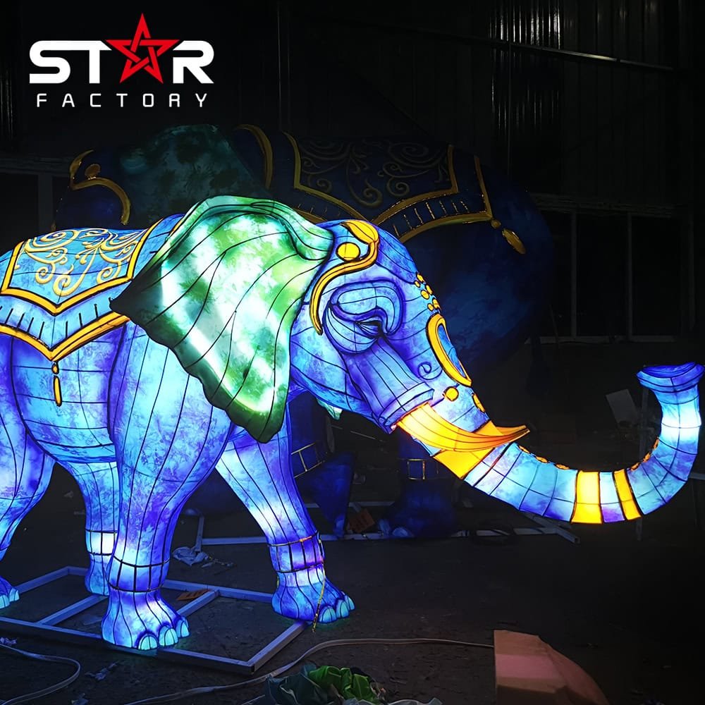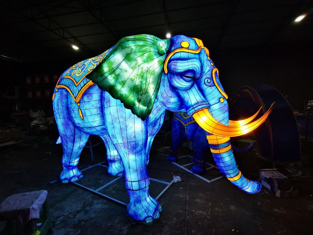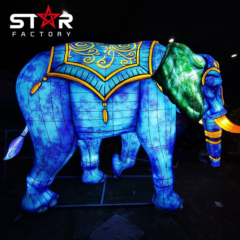 The Mystical Purple Elephant Lantern is a stunning blend of realism and imagination. Inspired by the power and grace of real elephants, this lantern features a vibrant purple color scheme, giving it a magical and surreal appearance. It serves as a spectacular attraction at light festivals, parks, and themed exhibitions.