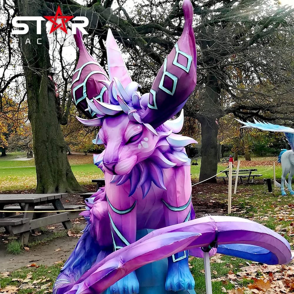 The Mysterious Purple Fantasy Creature Lantern brings an enchanting, dreamlike presence to any event. Its glowing body, shimmering accents, and surreal features make it a stunning centerpiece for fantasy-themed festivals, immersive exhibitions, and nighttime attractions.